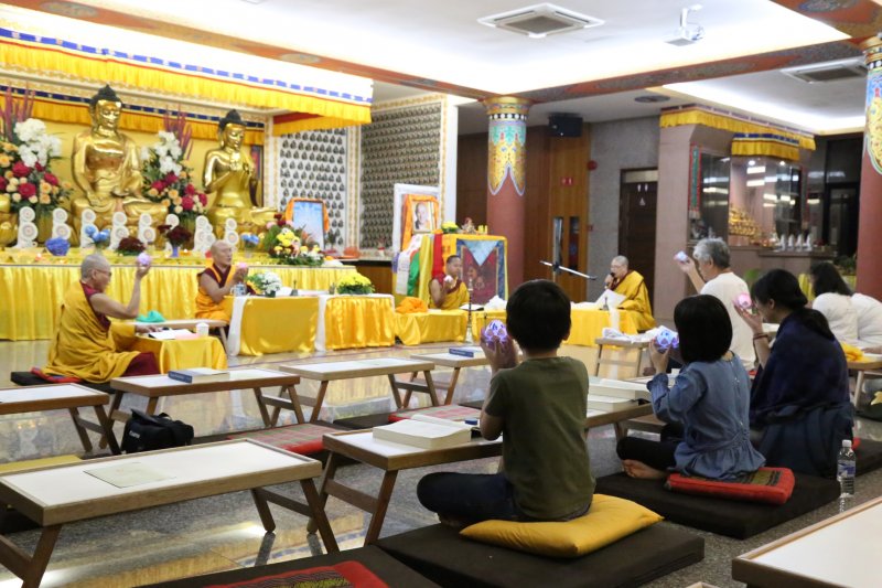 2019年6月1日(星期六)东马古晋居士林与诗巫南无布达佛教学会联办《2019古晋噶举祈愿法会》,由喇嘛迦旺上师及僧尼共四位主持。在古晋居士林宏法大楼密宗殿举行。适逢近日刚完成火供法会的萨迦派罗德上师,随喜参与第一座法的共修。甚是吉祥!日间数个座法恭颂《祈愿仪轨》及《普贤行愿品》等,晚上则举行点灯祈愿世界和平法会。